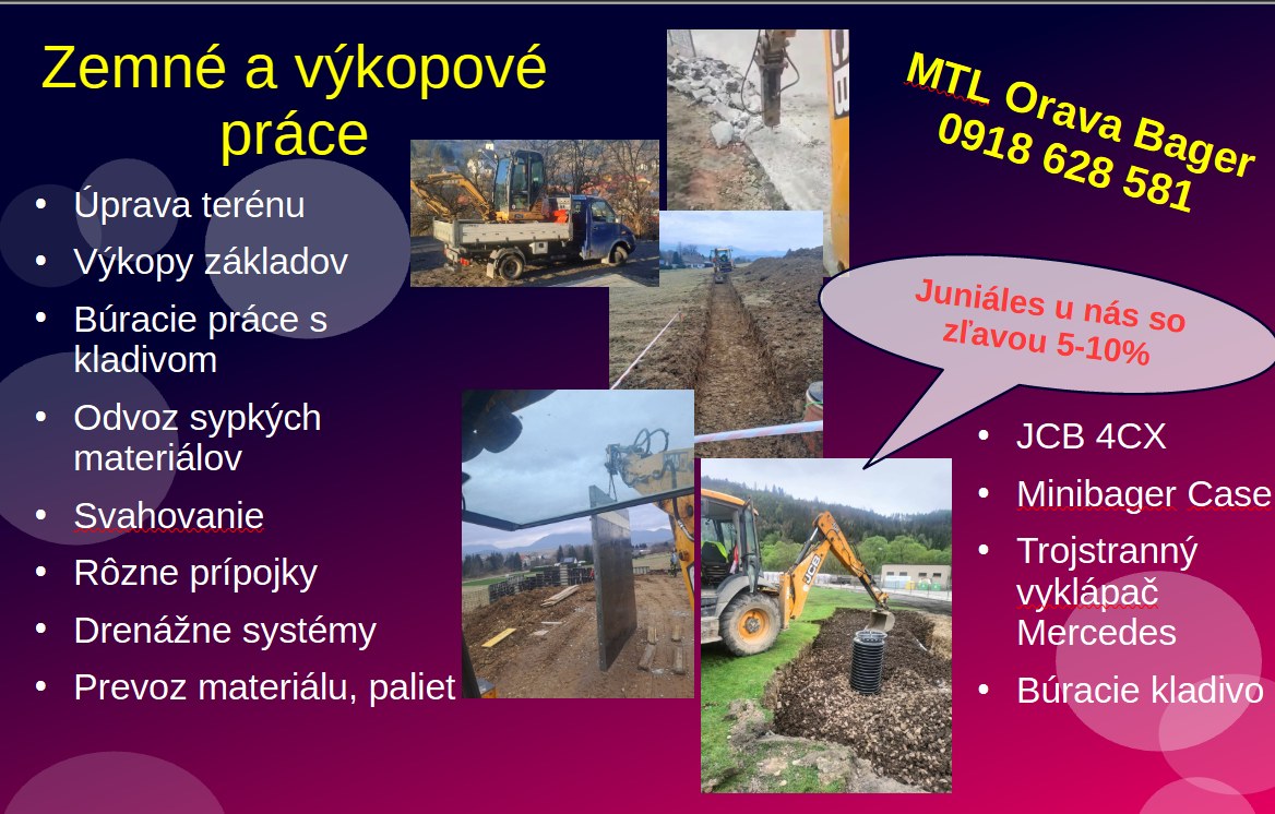 MTL Orava Bager s.r.o. je spoločnosť, ktorá sa špecializuje na poskytovanie zemných a stavebných prác v regióne Oravy. Firma disponuje modernou technikou a kvalifikovaným personálom, čo jej umožňuje realizovať rôzne typy prác spoľahlivo a včas. Zameriava sa predovšetkým na komplexné riešenia pre stavebníctvo, vrátane výkopových prác, úprav terénu a ďalších súvisiacich činností.