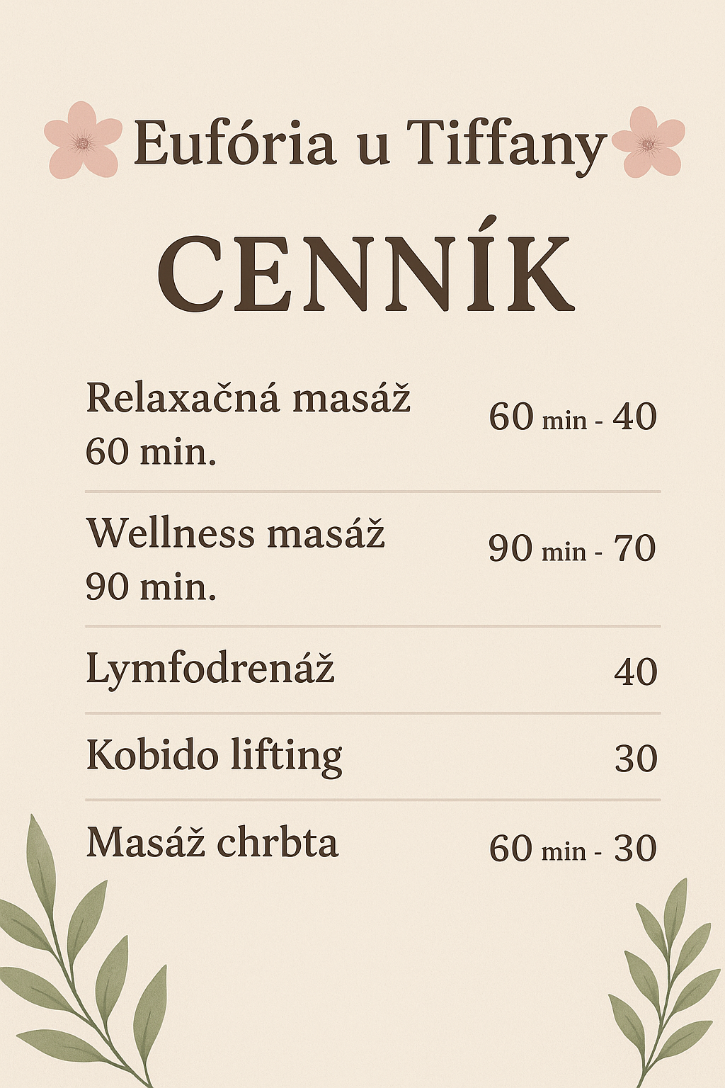 Masáže Eufória u Tiffany